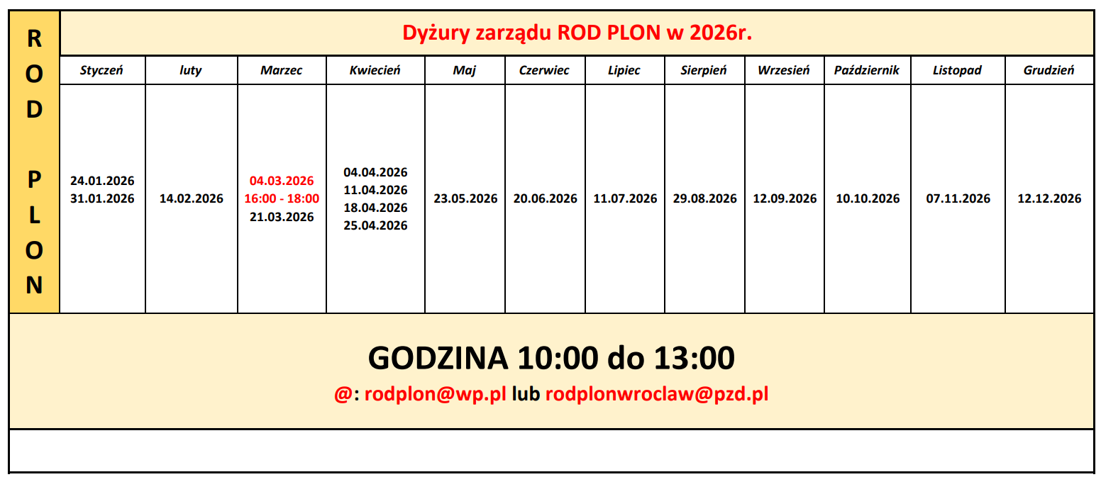 Przedstawiamy harmonogram dyżurów w których będą przyjmowani działkowcy.